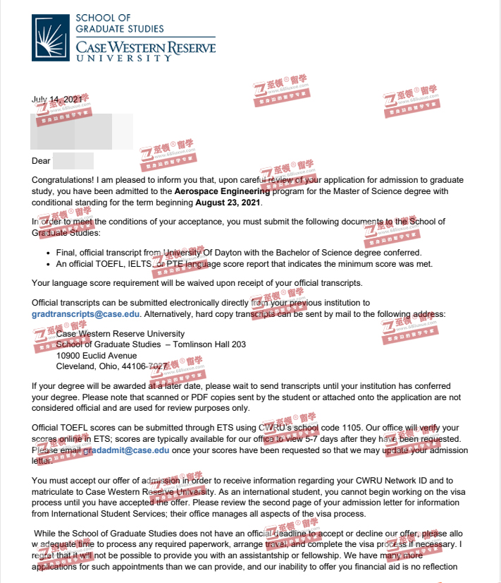 录取结果:Case Western Researve University,Master of Science in Aerospace Engineering凯斯西储大学航空航天工程硕士录取