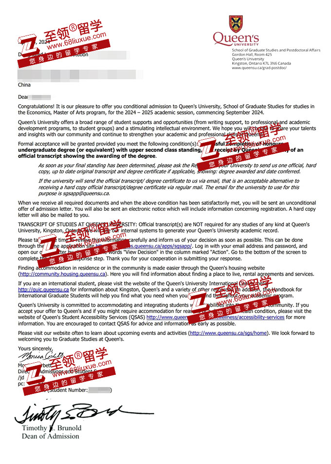 录取结果:Queen's University,the Economics Master of Arts 女王大学经济学文学硕士录取