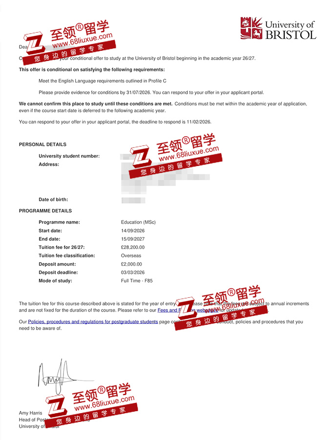 申请过程:2026年1月初递交申请,不到半个月获得了布里斯托大学录取。