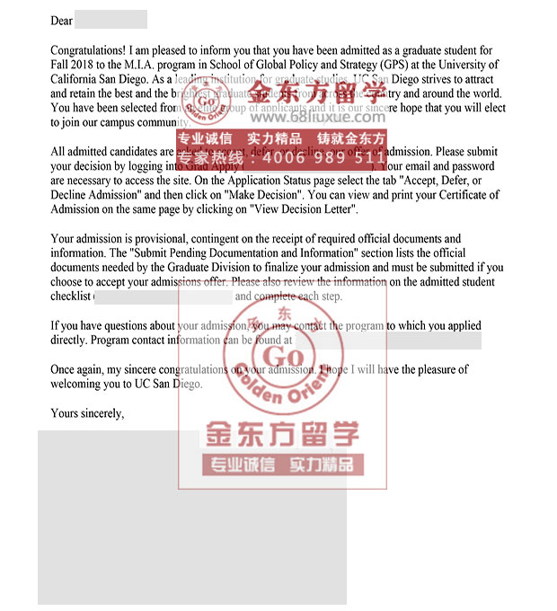 录取结果:University of California, San Diego加州大学圣地亚哥分校,Master of International Affairs 国际事务硕士